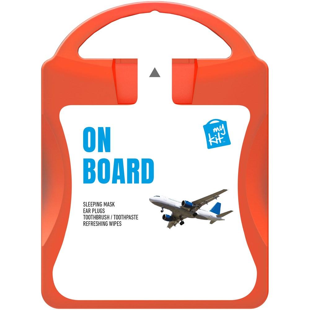 De MyKit Aan Boord Set is de perfecte gepersonaliseerde reisset als relatiegeschenk met jouw logo in full colour bedrukking. Je klanten komen fris en ontspannen aan op hun bestemming dankzij de handige inhoud: 1 paar oogpads, 1 paar oordopjes en 2 verfrissende doekjes. Alle producten voldoen aan de strikte EU-voorschriften voor verzorging en eerste hulp.