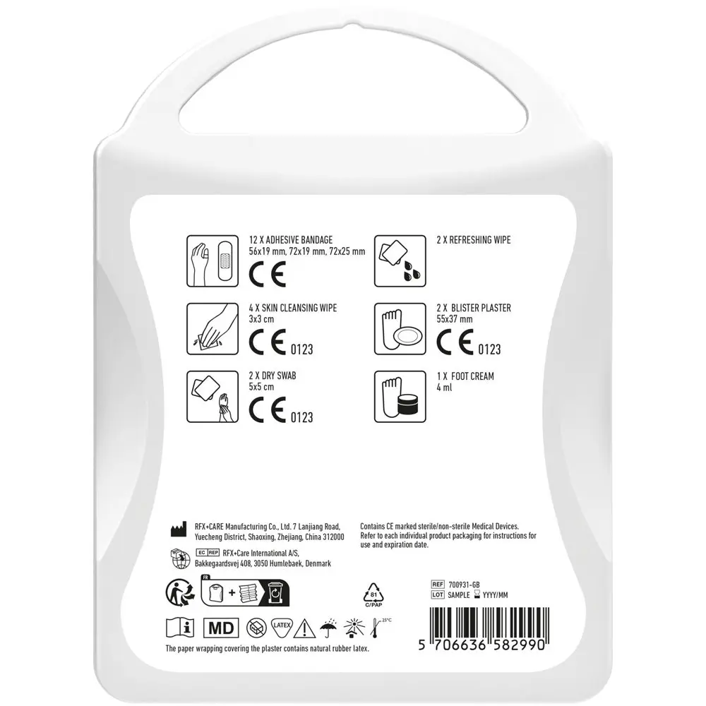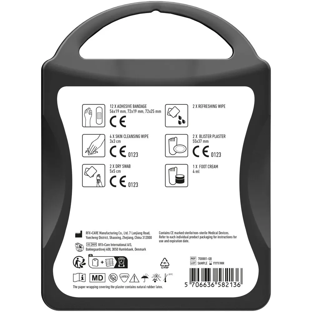 Ontdek de MyKit Active Lifestyle, uw ideale gepersonaliseerde relatiegeschenk voor actieve doelgroepen. Deze compacte EHBO-kit voorziet in basiswondverzorging, blarenpreventie en herstellende voetgel, perfect voor wandelen, trektochten, hardlopen of golfen. Alle producten voldoen aan strenge EU-regelgeving en zijn vervaardigd uit PP-kunststof in Europa, voor duurzaamheid en kwaliteit.