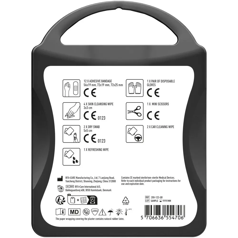 Als marketingprofessional of eventorganisator kiest u voor deze kit om uw merk te versterken: personaliseer met full colour logobedrukking en deel uit als waardevol relatiegeschenk. Het bevordert uw bedrijfsimago door veiligheid en zorg te benadrukken, ideaal voor events of promoties. Compact en duurzaam, zorgt het voor blijvende waardering bij uw klanten.