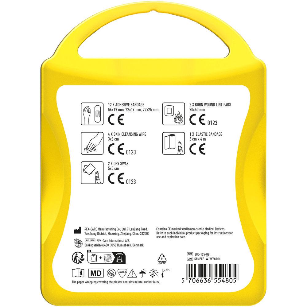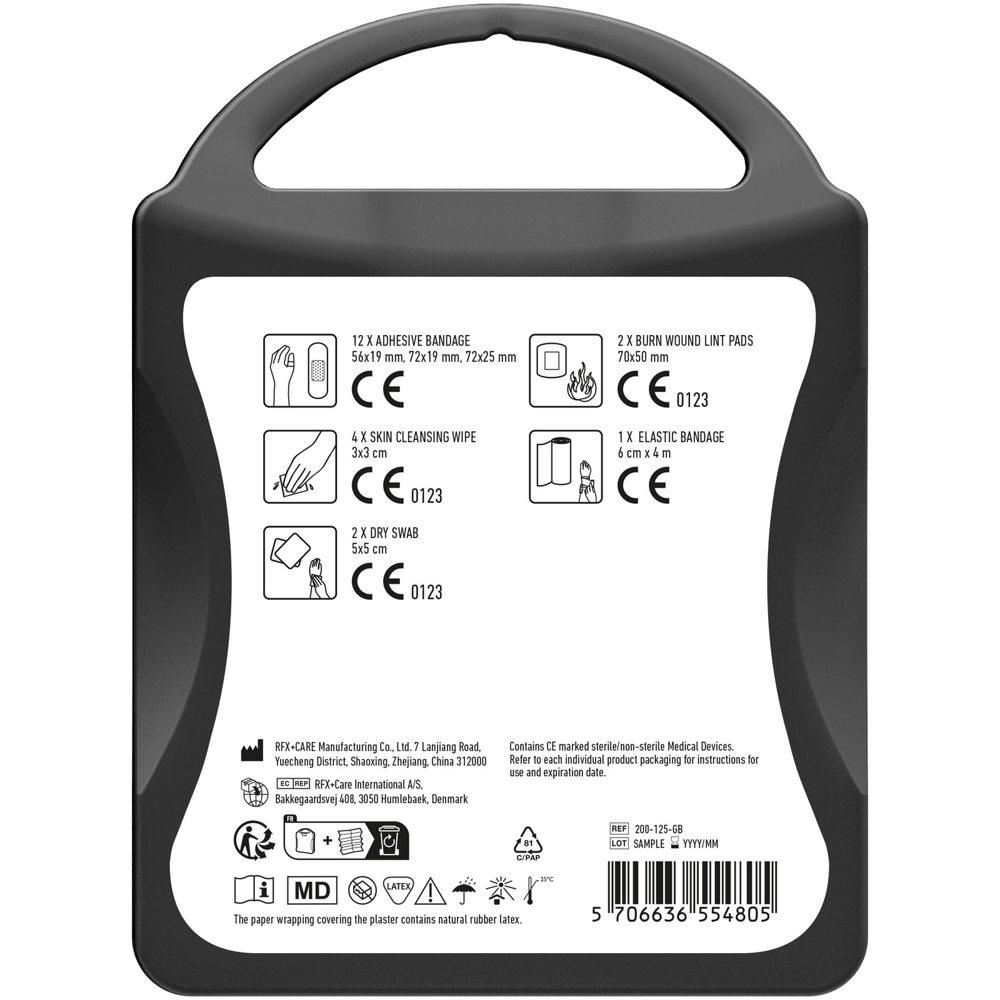 Deze basis Eerste hulp kit is een handige set om bij je te hebben in je auto of in huis om voorbereid te zijn op ongevallen. Inhoud : 12 Waterbestendige pleisters, 4 Vochtige reinigingsdoekjes, 2 Droge reinigingsdoekjes, 1 Elastisch verband en 2 Brandwondencompres. Alle eerste hulp en verzorgingsartikelen in de kit voldoen aan de EU regelgeving. Prijs is inclusief full colour bedrukking.