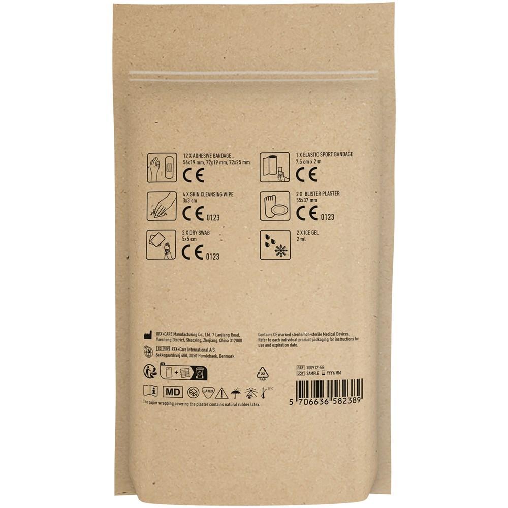 Een speciale sport MyKit om kleine ongevallen tijdens het sporten direct te kunnen behandelen. Ideaal voor alle bedrijven en instellingen die bezig zijn met sport. Inhoud:12 Waterbestendige pleisters, 4 Vochtige reinigingsdoekjes, 2 Droge reinigingsdoekjes, 2 Ice gel, 2 Blarenpleister, 1 Elastisch Sportverband. Alle eerste hulp en verzorgingsartikelen in de kit voldoen aan de EU regelgeving. Prijs is inclusief full colour bedrukking. Geleverd in een papieren stazak.