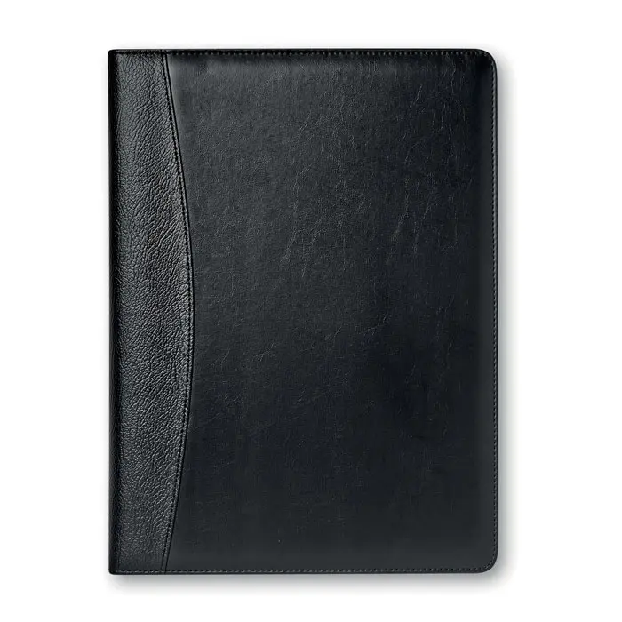 Ontdek onze imitatielederen A4 schrijfmap, ideaal als gepersonaliseerd relatiegeschenk voor uw bedrijf. Deze praktische map bevat een ingebouwde rekenmachine op zonne-energie, een balpen met blauwe inkt en een schrijfblok, perfect voor notities tijdens vergaderingen of events.