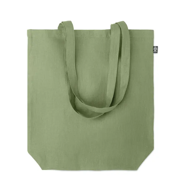 Deze tas biedt u meerdere voordelen: het materiaal van 100% hennep is milieuvriendelijk en biologisch afbreekbaar, wat uw imago als duurzaam bedrijf versterkt. Met een stevigheid van 200 gr/m² houdt de tas lang stand, ideaal voor herhaald gebruik door uw klanten. De lange draaghengsels zorgen voor comfortabel dragen over de schouder, waardoor uw ontvangers de tas graag meenemen naar dagelijkse boodschappen of events.