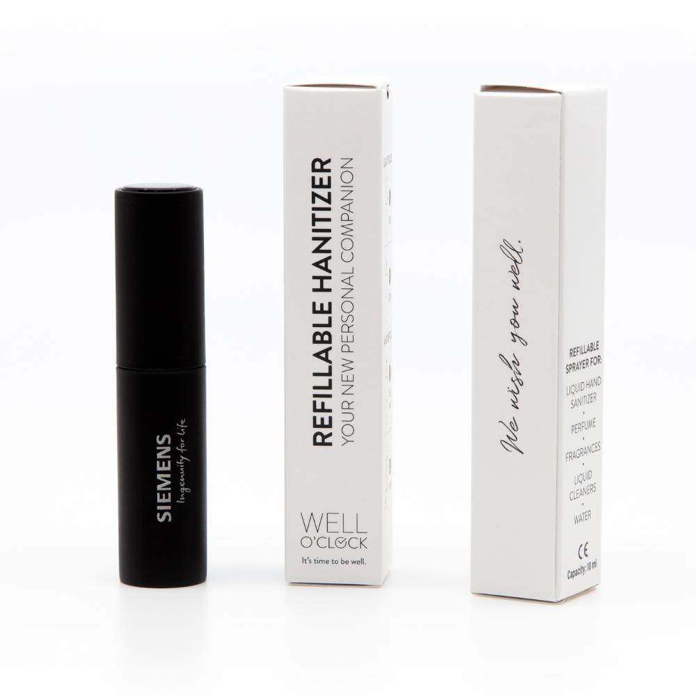 Ontdek de meest praktische oplossing voor handdesinfectie op events of als relatiegeschenk. Je vult hem eenvoudig bij met handgel, parfum of andere vloeistoffen, dankzij de lekvrije verstuiver en meegeleverde navultrechter. Ideaal voor jouw marketingacties: duurzaam, herbruikbaar en perfect te personaliseren met jouw logo. Zo promoot je jouw merk langdurig en milieuvriendelijk bij klanten.