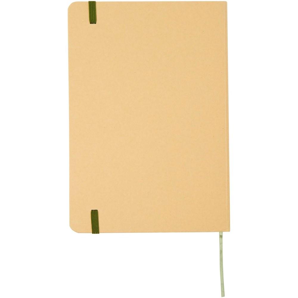 Ontdek dit duurzame A5 notitieboekje met harde kaft van gerecycled karton. Je krijgt 80 gelinieerde vellen papier van 70 g/m², een elastische sluiting, een handig lint en afgeronde hoeken voor extra comfort.