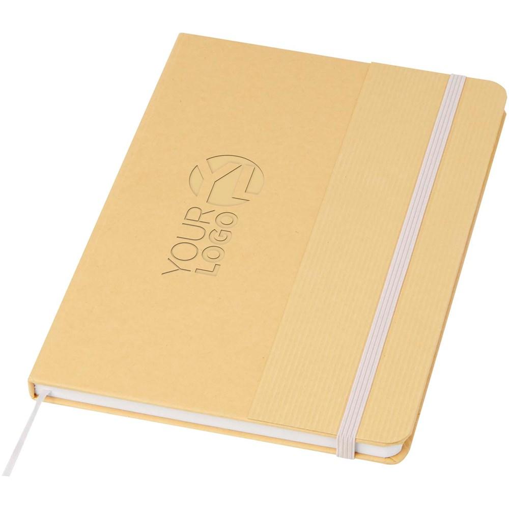 Het Nelida A5 notitieboek met harde kaft van gerecycled karton is ideaal als gepersonaliseerd relatiegeschenk voor je events en marketingcampagnes. Je laat het eenvoudig bedrukken met je logo, zodat je merk bij elke notitie top-of-mind blijft bij je klanten.