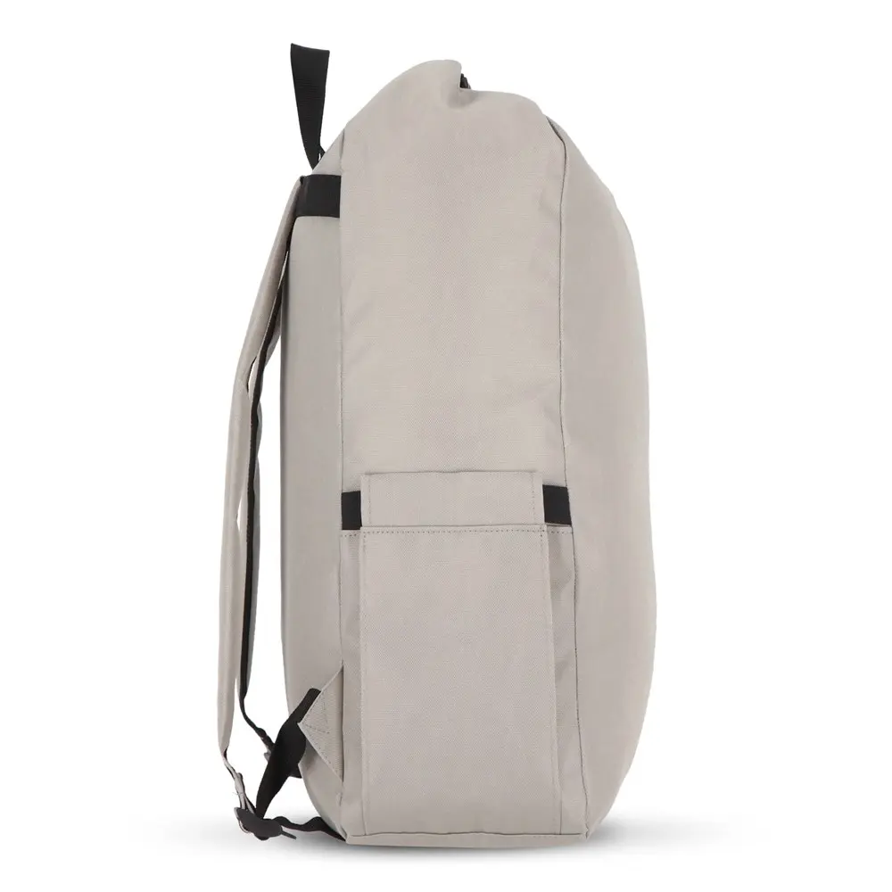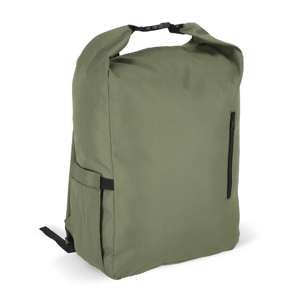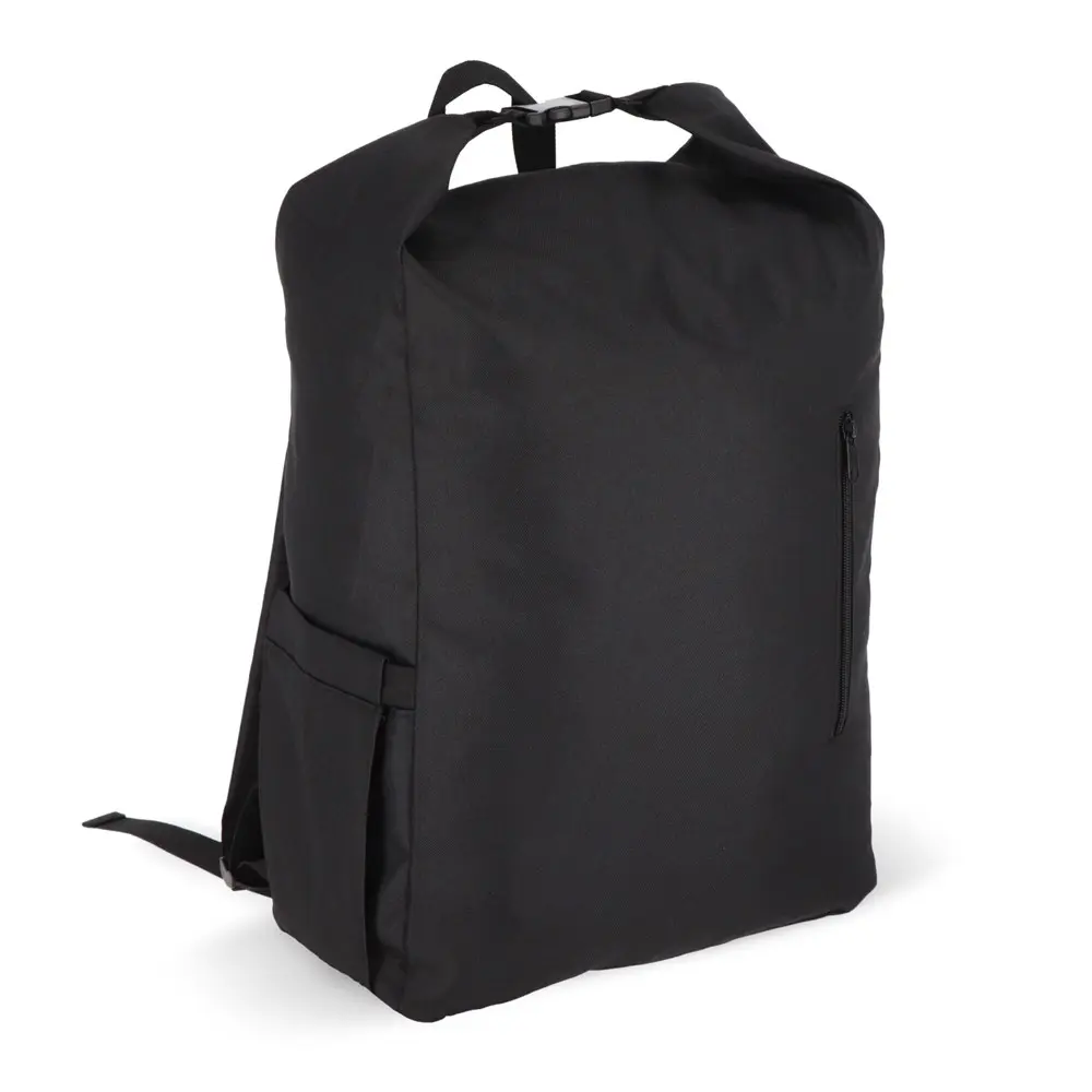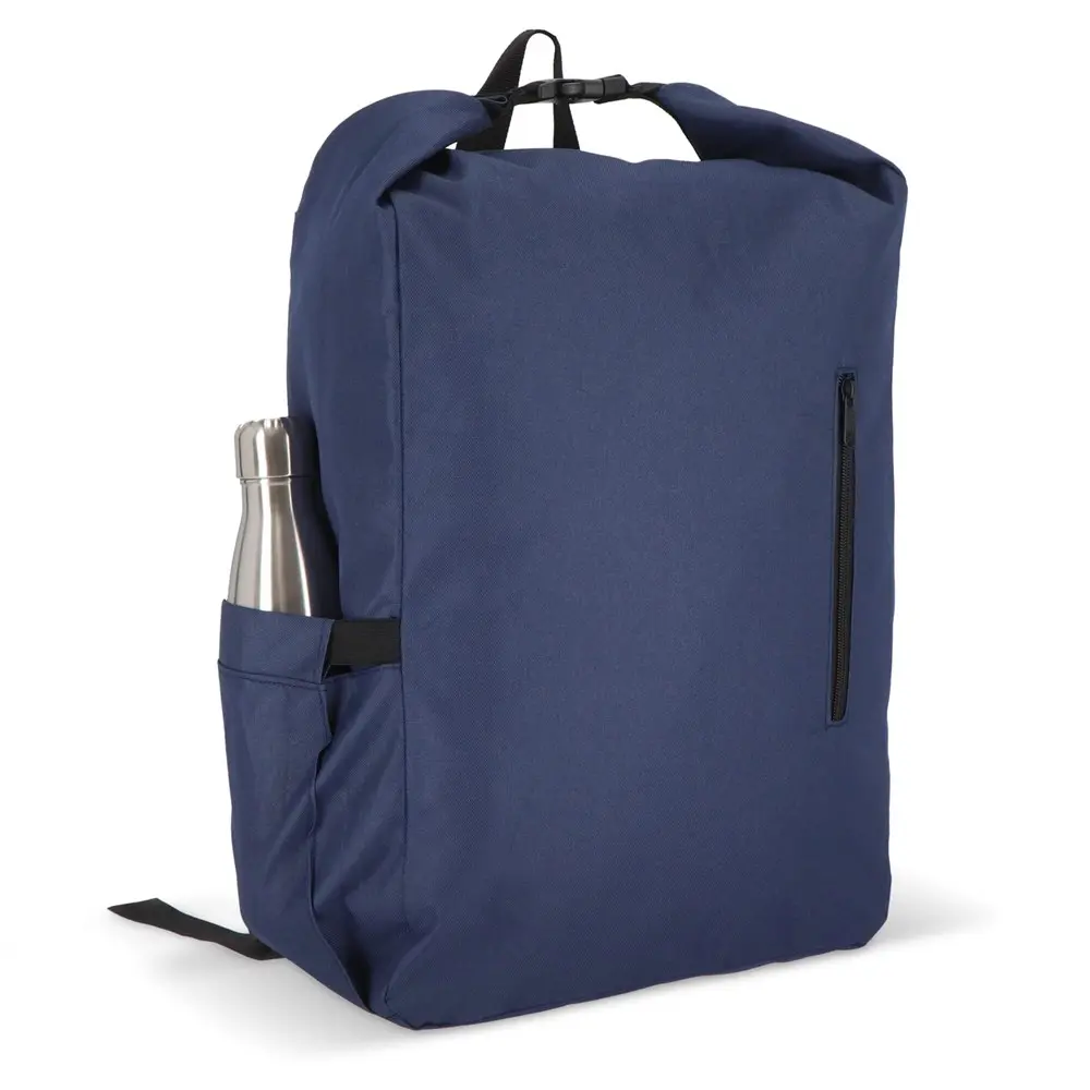 Deze handige rugzak is gemaakt van gerecycled PET. Hij heeft verstelbare, gewatteerde schouderbanden, een handvat aan de bovenkant en een voorvak met ritssluiting, ideaal voor kleinere accessoires. Het zijvak is ideaal voor een waterfles of paraplu.