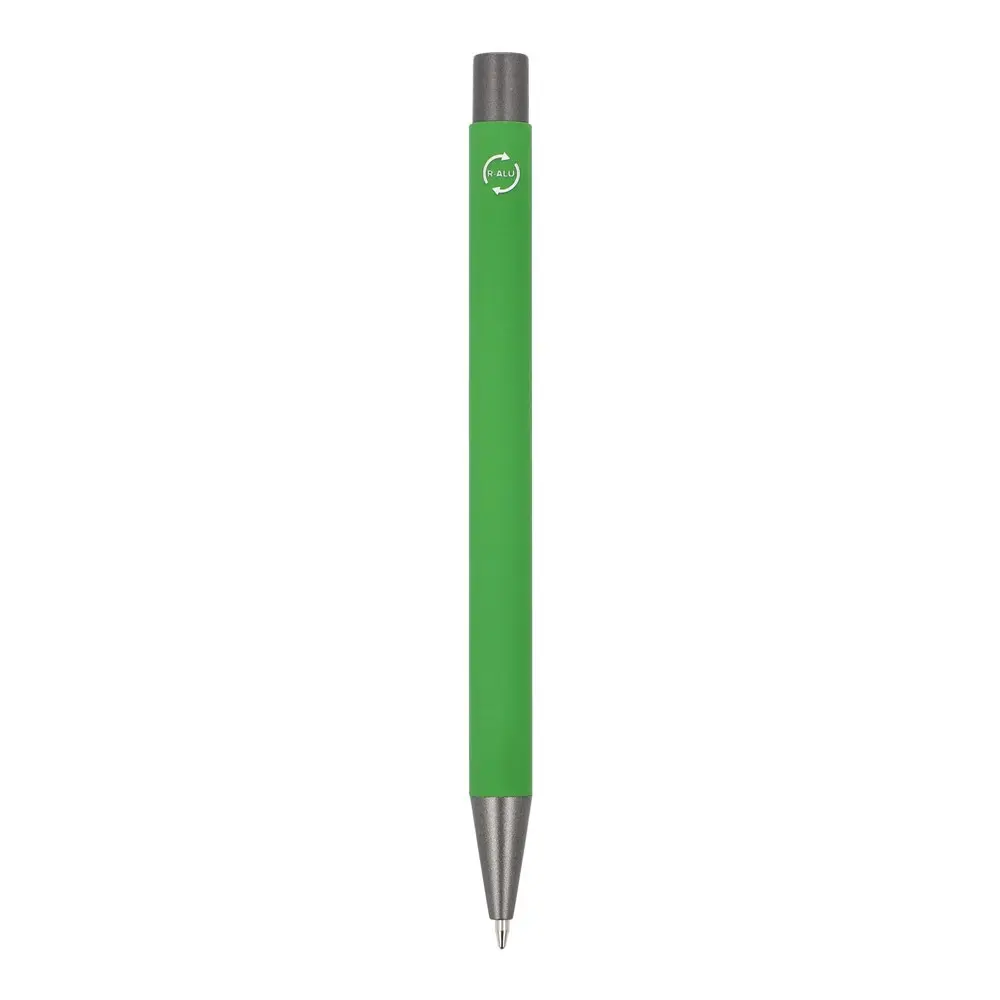 Ontdek onze elegante aluminium balpen, vervaardigd uit gerecycled materiaal met een zachte touch afwerking. Dit strakke ontwerp biedt niet alleen een premium uitstraling, maar draagt ook bij aan uw duurzame bedrijfsimago. Ideaal als relatiegeschenk voor uw marketingcampagnes of events, personaliseerbaar met uw logo voor maximale zichtbaarheid.