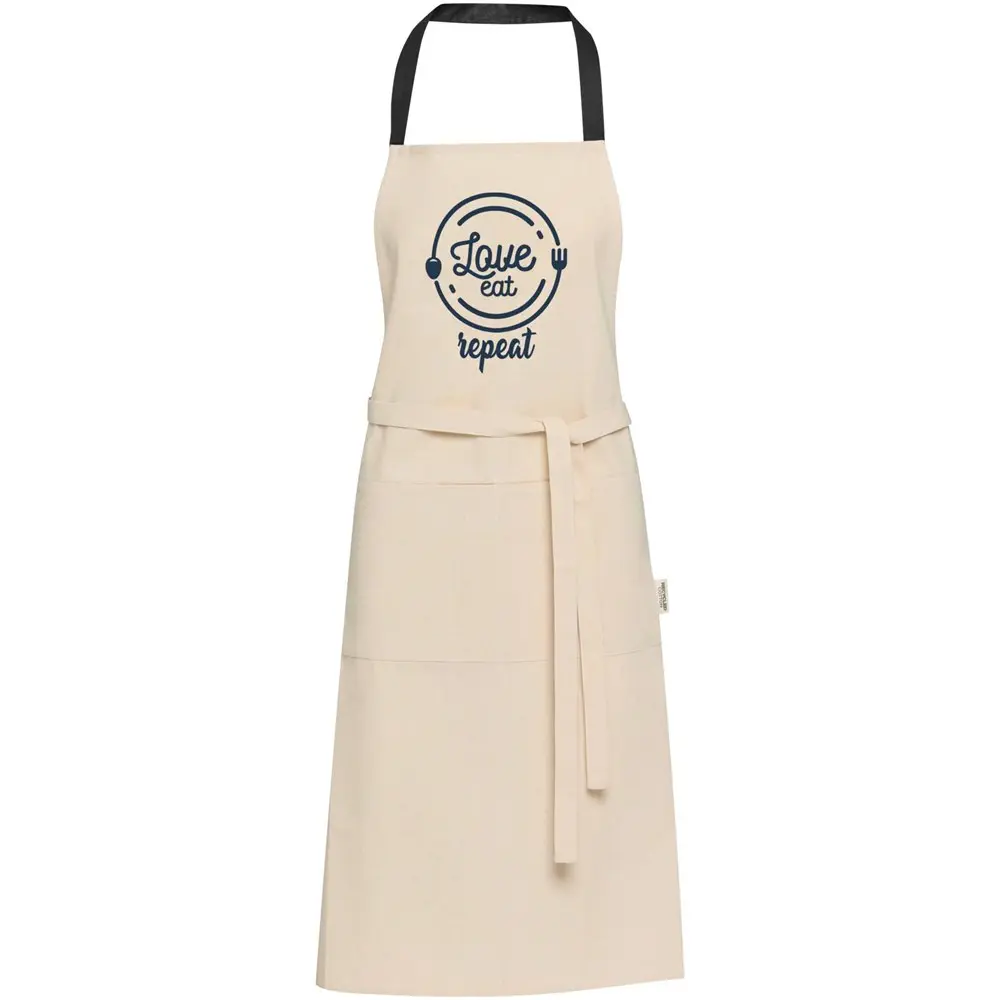Ontdek ons schort uit gerecycled katoen, ideaal als gepersonaliseerd relatiegeschenk voor uw bedrijf. Met een gewicht van 210 g/m² biedt het optimale bescherming en comfort tijdens gebruik.