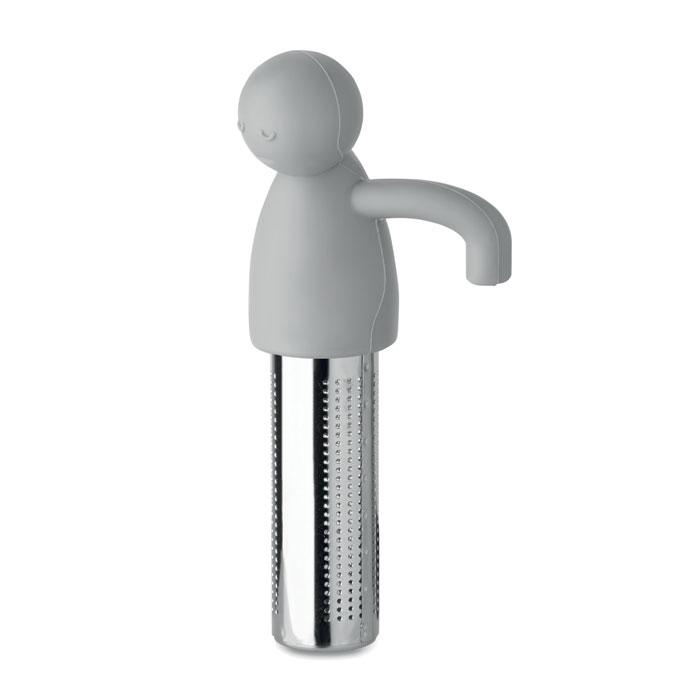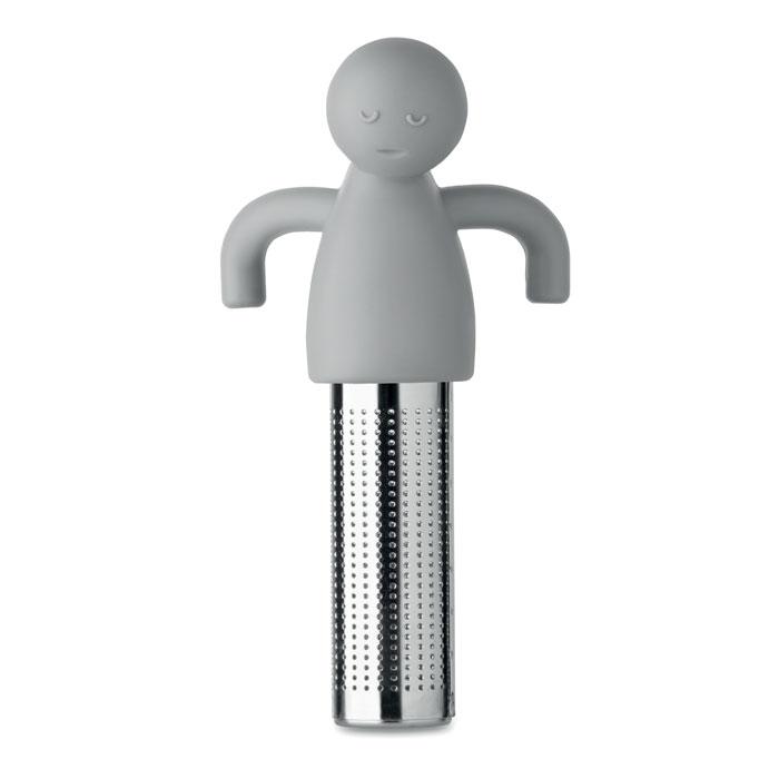 Grappige thee-infuser voor losse theebladeren. Vorm van een mannetje in siliconen en filter van roestvrij staal.