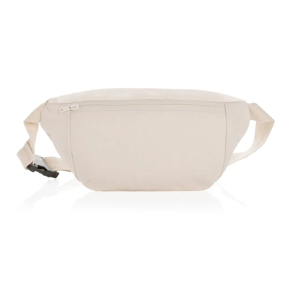 Als relatiegeschenk met logobedrukking versterkt deze heuptas uw merkzichtbaarheid. Uw marketingteam of eventorganisatoren kunnen de tas personaliseren om uw bedrijf te promoten bij klanten. Het materiaal van 285 g/m² recycled canvas is robuust en geschikt voor bulkbestellingen, ideaal voor grootschalige uitdelingen. Kies voor deze duurzame optie om uw doelgroep te informeren over uw engagement voor recycling en ecologie, terwijl u praktisch nut biedt.