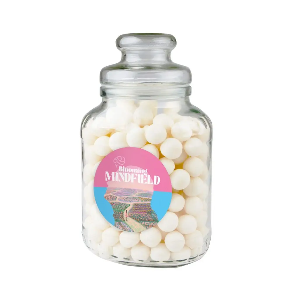 Met deze snoeppot versterkt u uw merkherkenning op events of als reclamegeschenk. De personalisatie via de sticker zorgt voor een professionele uitstraling, terwijl de royale vulling langdurige waardering bij uw klanten creëert. Perfect voor ondernemingen die indruk willen maken zonder veel moeite.