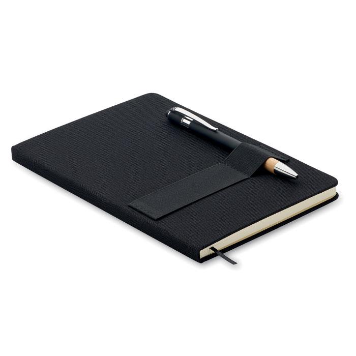 Ontdek dit praktische a5 notitieboek met pen, perfect als gepersonaliseerd relatiegeschenk voor je events en marketingacties. Gemaakt van harde kaft in 600D RPET voor een duurzame uitstraling die je merk versterkt.