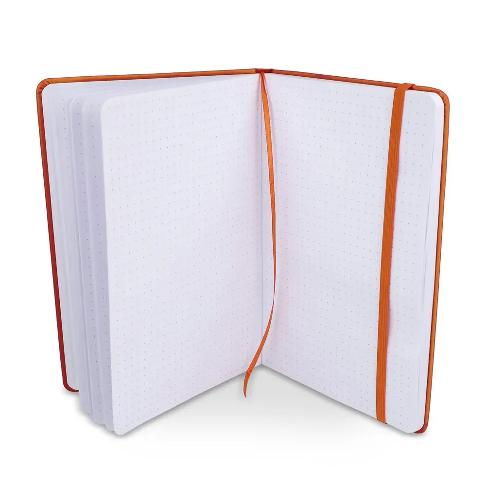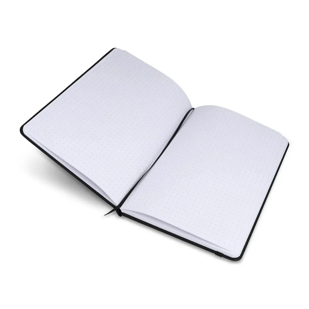 Ontdek ons klassiek PU notitieboek in A5-formaat, uitgerust met een bijpassende elastische band en een handig lint. Het bevat 96 vellen wit papier met een puntraster, ideaal voor gestructureerde notities en schetsen. Dit notitieboek voldoet aan SMETA- en FSC-normen, wat borg staat voor ethische productie en duurzame bosbeheer.