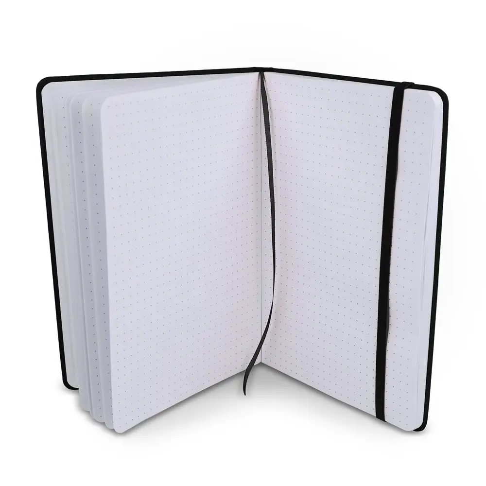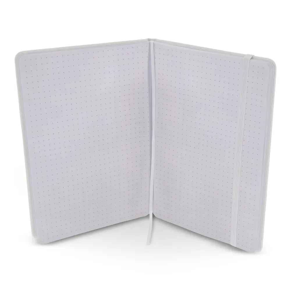 Ontdek ons Notitieboek A5 PU met puntraster pagina's, een klassiek en elegant relatiegeschenk dat perfect past bij uw bedrijfsimago. Dit notitieboek biedt 96 vellen wit papier met puntraster voor flexibel noteren, schetsen of plannen, ideaal voor creatieve professionals. De bijpassende elastische band en lint zorgen voor veilig en georganiseerd gebruik.