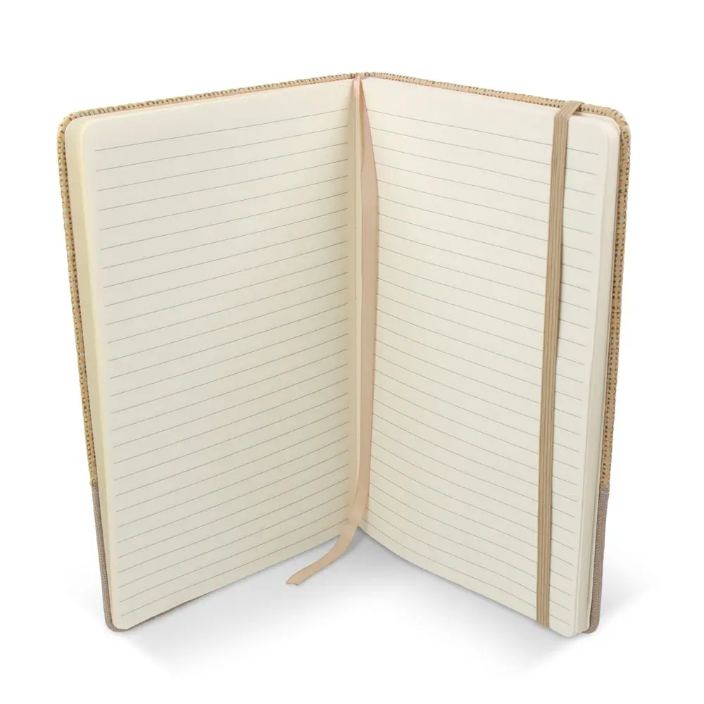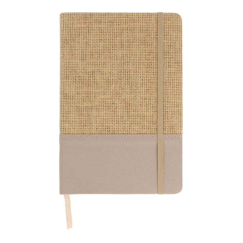 Ontdek een stijlvol notitieboek dat duurzaamheid viert met een cover van jute en R-PET, gecombineerd met FSC-gecertificeerde pagina's. Dit product is ideaal voor uw marketingcampagnes en events, waar u het kunt personaliseren met logobedrukking om uw merk te promoten.