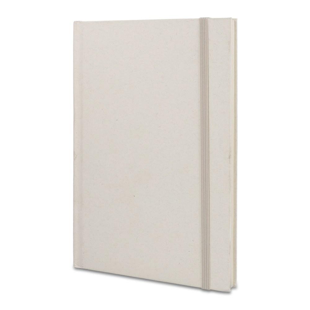 Dit duurzame A5-notitieboek heeft een omslag van gerecycled 120gsm melkpakpapier. Het bevat 80 vellen 70g/m² gelinieerd gerecycled melkpakpapier, met een sluiting van elastiek en een placemarker met lint.
