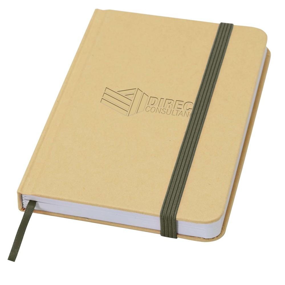 Dit compacte notitieboek biedt 96 blanco vellen van 70 g/m² papier, een zachte cover, elastische sluiting en lintmarkering. Perfect voor dagelijks gebruik op kantoor of onderweg, en superhandig voor marketingteams die indruk willen maken met duurzame promotieartikelen.