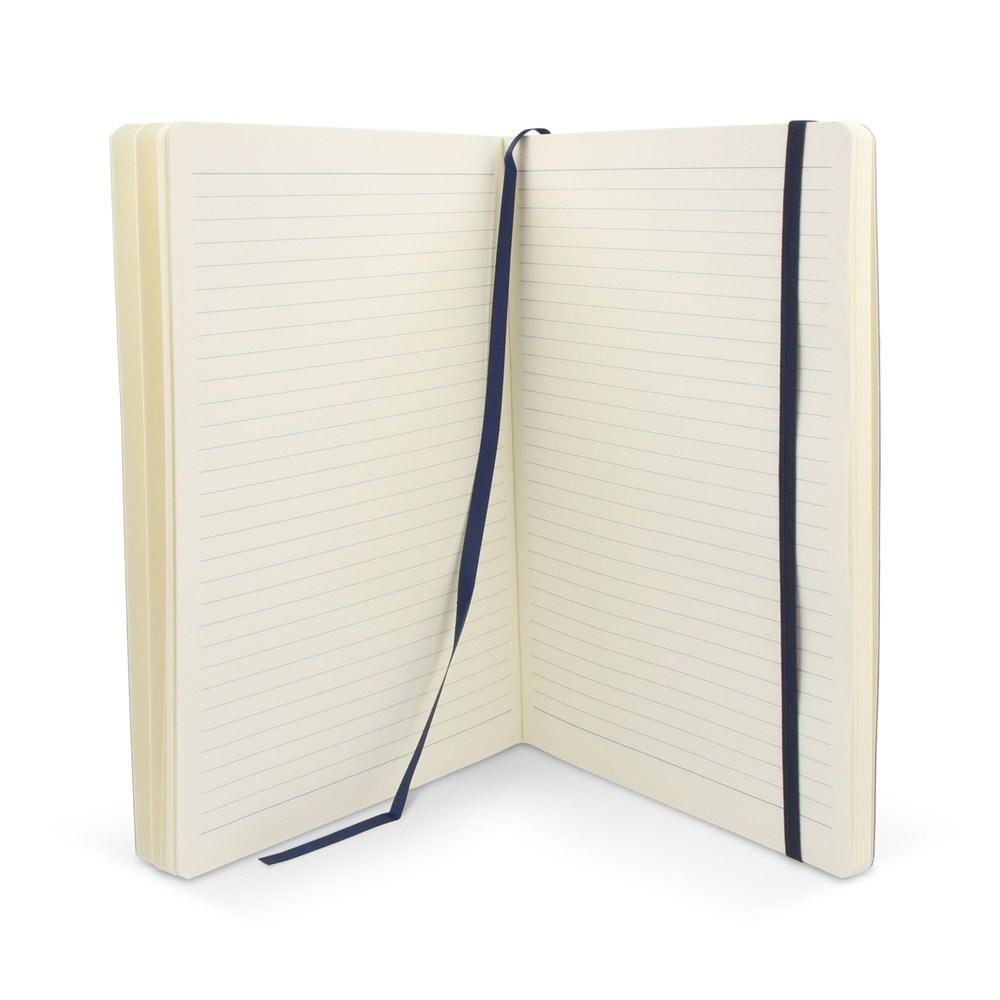 Maak kennis met ons Maxi notitieboek met zachte omslag, een perfecte combinatie van elegantie en functionaliteit. Met de luxe crèmekleurige gelinieerde pagina's wordt schrijven een plezier. Het ingebouwde lint zorgt ervoor dat je nooit je plaats verliest, terwijl de elastische band je gedachten veilig vasthoudt.