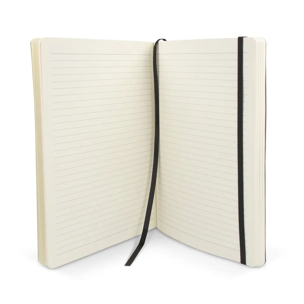Met gelinieerde pagina's schrijft u moeiteloos uw ideeën op, wat het notitieboek tot een betrouwbare metgezel maakt tijdens vergaderingen of brainstormsessies. Het ingebouwde lint helpt u snel uw plaats terug te vinden, terwijl de elastische band alles veilig bij elkaar houdt. Door deze functionaliteiten kiest u voor een product dat uw merk professionaliteit uitstraalt en uw relaties versterkt.