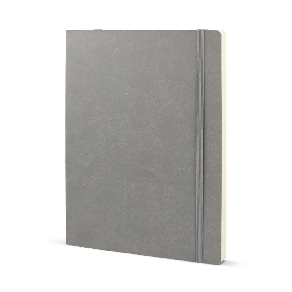 Ontdek het Maxi notitieboek met zachte omslag, ideaal als gepersonaliseerd relatiegeschenk voor uw bedrijf. Dit notitieboek combineert stijl en praktisch nut, met gelinieerde pagina's die notities soepel en georganiseerd maken. Het ingebouwde lint markeert uw pagina betrouwbaar, terwijl de elastische sluitband uw aantekeningen beschermt tegen verlies.