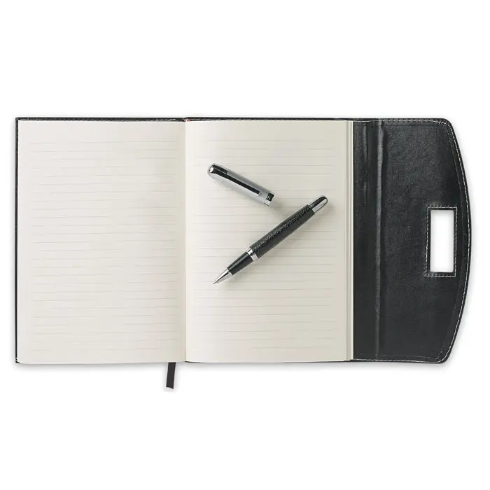 Deze schrijfmap biedt talrijke voordelen voor uw marketingstrategie. Uw doelgroep waardeert de praktische functionaliteit: 120 vellen gelinieerd papier (240 pagina's) voor uitgebreide notities tijdens meetings of events. De bijgeleverde metalen pen met zwarte inkt zorgt voor een complete set, klaar voor gebruik. Personaliseer hem met uw bedrijfslogo om uw merk te versterken en langdurige zichtbaarheid te garanderen. Het compacte formaat past gemakkelijk in tassen, wat het ideaal maakt voor uitdeling aan professionals.