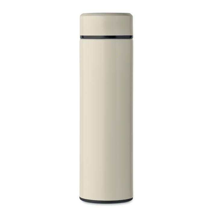 Dubbelwandige vacuüm isolerende fles van gerecycled roestvrij staal (90% gerecycled roestvrij staal en 10% roestvrij staal) met een keramische coating aan de binnenkant. Lekvrij. Inhoud: 420ml.