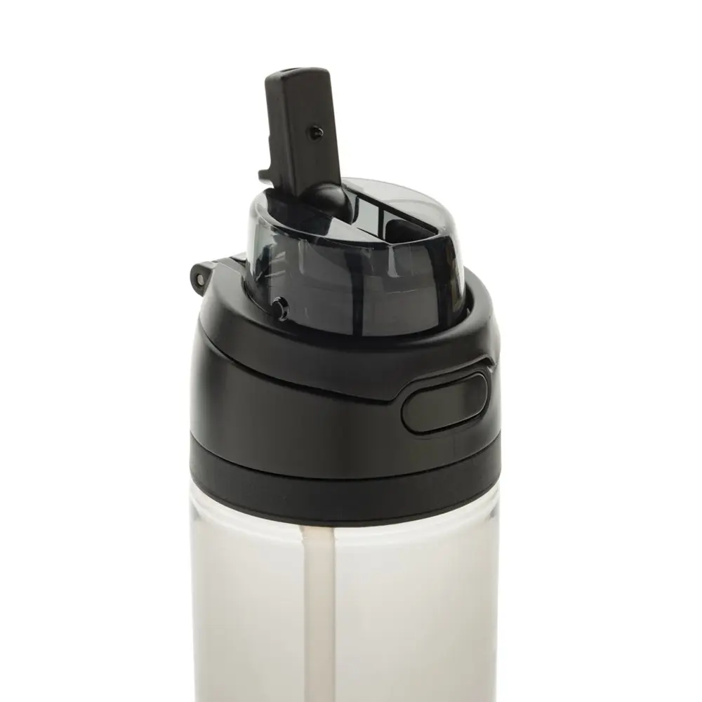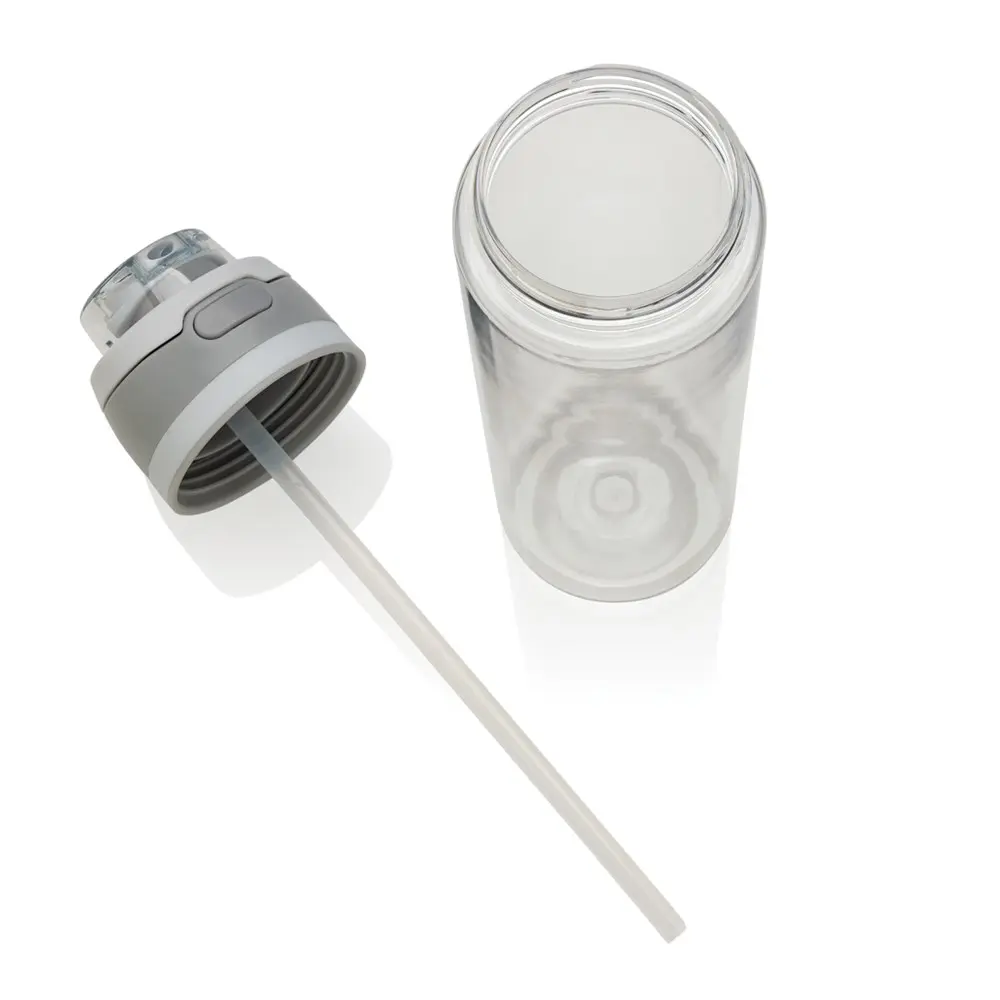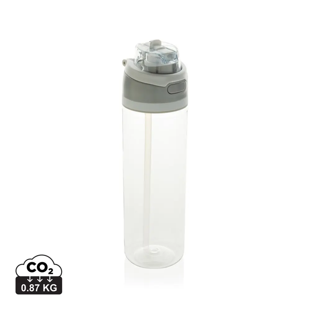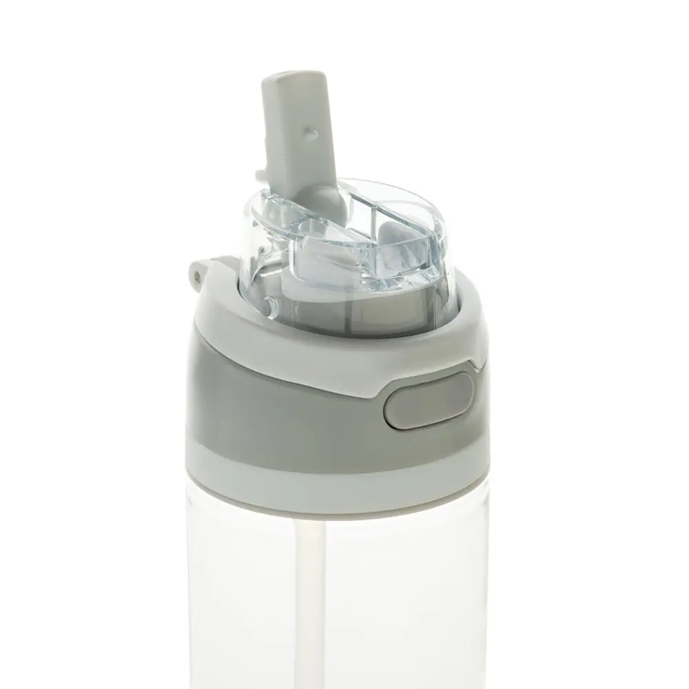 Maak kennis met deze innovatieve lichte waterfles, ideaal als gepersonaliseerd relatiegeschenk. Ontworpen voor uw dagelijkse drinkroutine, biedt deze fles optimale flexibiliteit. U kiest zelf hoe u drinkt: via het ingebouwde rietje terwijl de fles rechtop staat, of door te kantelen voor een brede opening. De een-touch knop opent de dop eenvoudig, en sluit hem veilig af tegen vuil en bacteriën. Met een inhoud van 800 ml is deze fles perfect voor onderweg, events of als promotieartikel.