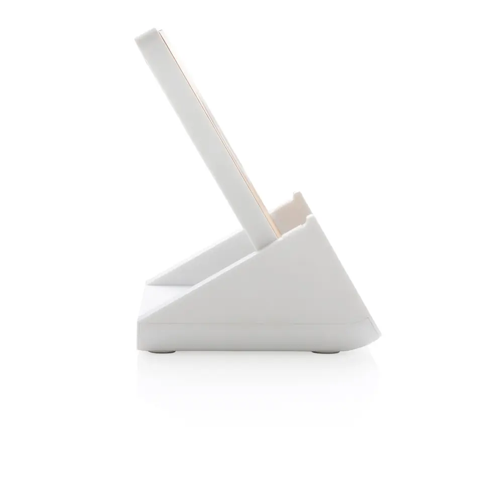 U laadt uw smartphone efficiënt op in horizontale of verticale positie, perfect voor het bekijken van video's tijdens events of meetings. Compatibel met de nieuwste Android-apparaten en iPhone 8 of hoger, biedt het 10W-oplading zonder kabels op het apparaat zelf. PVC-vrij en inclusief een 120 cm Type-C-kabel van gerecycled TPE, verpakt in FSC®-mix kraftdoos.