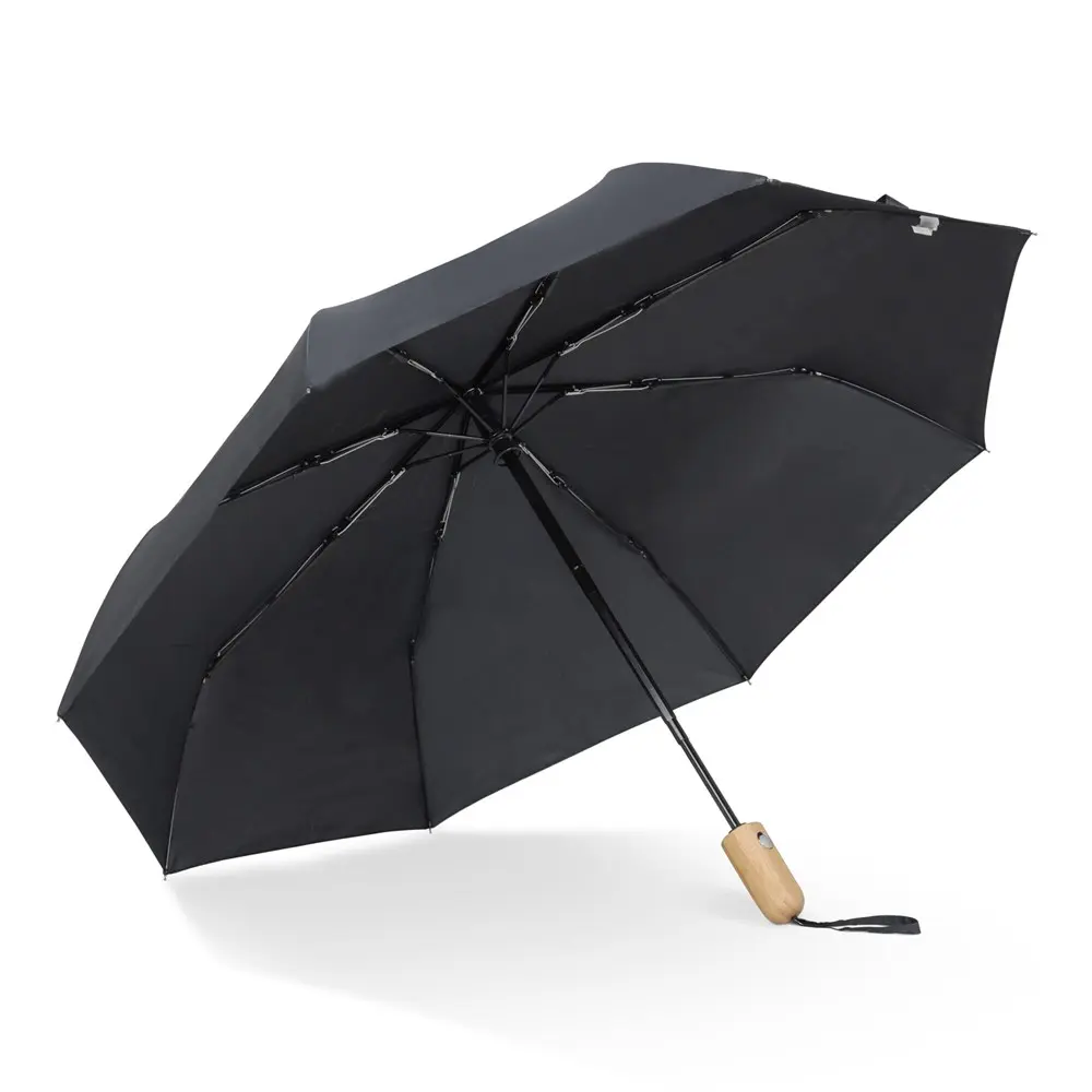 Ontdek onze opvouwbare paraplu met een diameter van 940 mm, ideaal als gepersonaliseerd relatiegeschenk. Gemaakt van gerecycled R-PET materiaal, draagt dit product bij aan uw duurzame bedrijfsimago via ecologisch en duurzaam. Het design handvat van echt hout biedt een premium touch die uw merk versterkt tijdens events of als reclamecadeau.