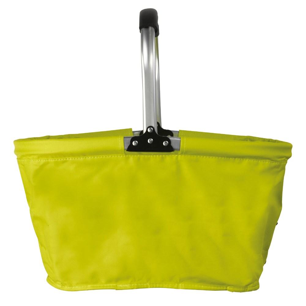 Eenvoudig opvouwbare koeltas in het model van een picknickmand. Stevig door hoogwaardig polyester. Kan bedrukt worden middels transferdruk.