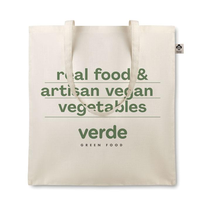 Boodschappentas van organisch katoen met lange hengsels. 105 gr/m².