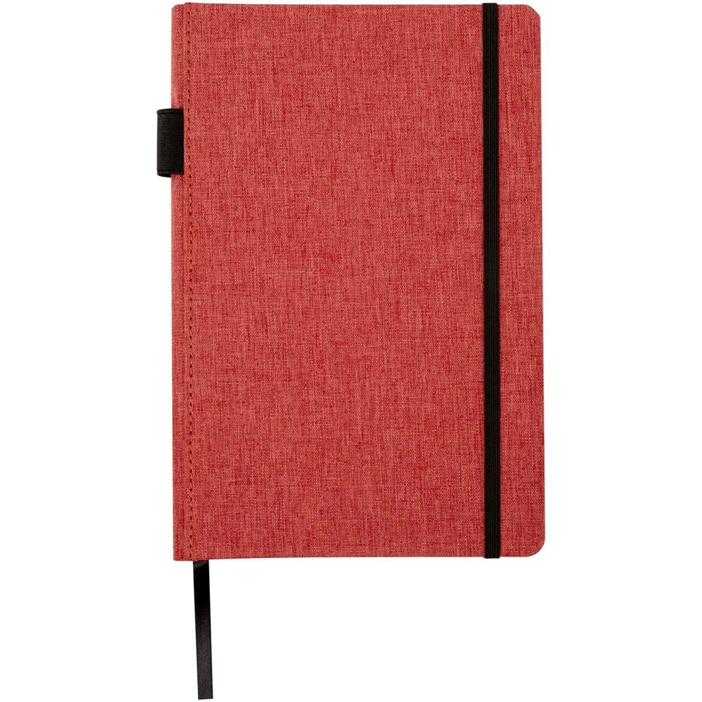 Ontdek dit praktische notitieboek in a5 formaat, ideaal als gepersonaliseerd relatiegeschenk met jouw logo. De cover van rpet-stof is gemaakt van gerecyclede pet-flessen, wat het een eco-vriendelijke keuze maakt voor jouw marketingacties en events. Je krijgt 96 vellen 70 g/m² gerecycled papier met gelijnde lay-out, perfect voor notities tijdens meetings of brainstorms.
