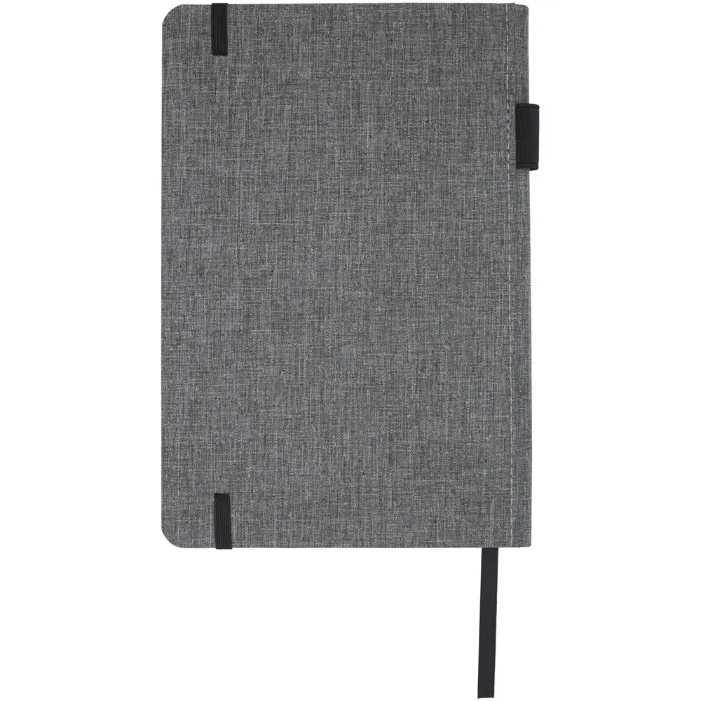 Personaliseer de cover van RPET-stof met uw logo voor een unieke merkbeleving. Het notitieboek is vervaardigd uit gerecycled kunststof en papier, wat bijdraagt aan een milieubewuste uitstraling. Perfect voor marketingacties, events of als bedankje aan klanten – het versterkt uw bedrijfsimago en bevordert herhaalaankopen.