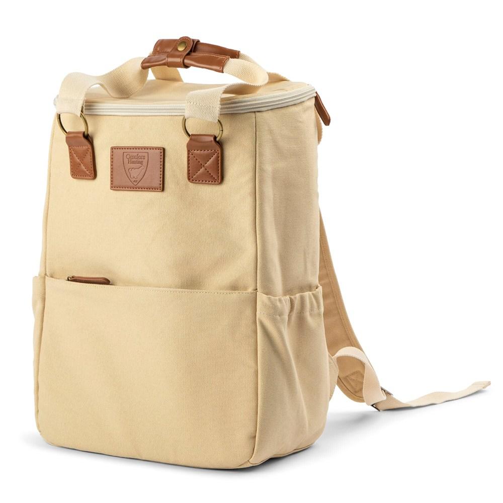 De duurzame canvas buitenkant met stevige isolatie houdt je drankjes en eten fris, zelfs op warme dagen. Je bevestigt hem makkelijk met het verstelbare rugbandje dat je losmaakt wanneer je wilt, plus een handig handvat voor extra comfort.