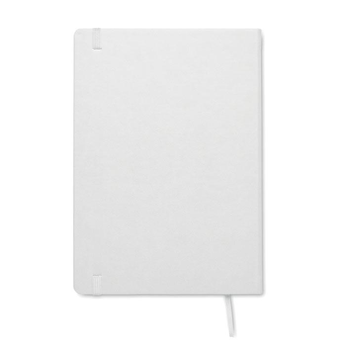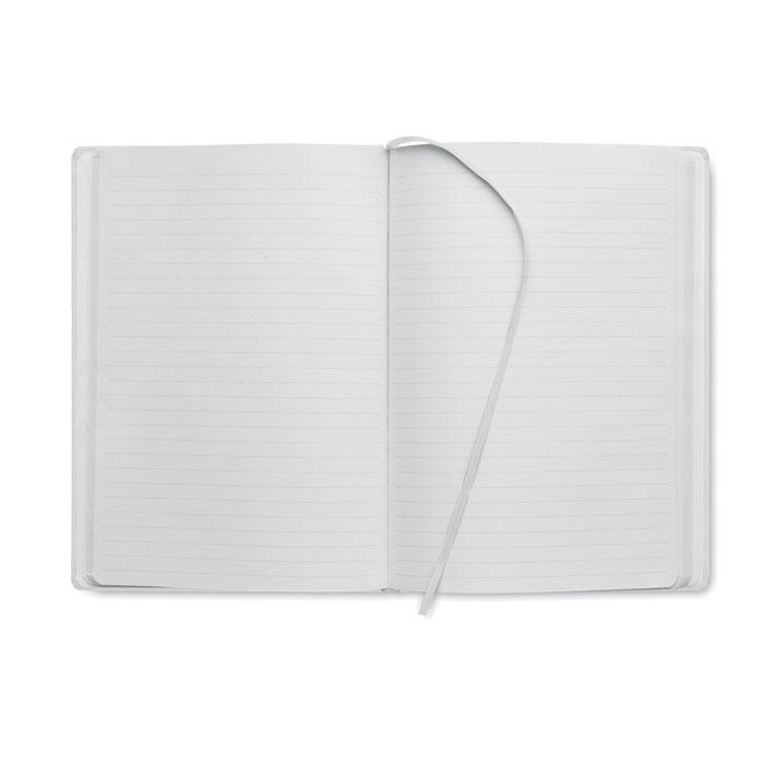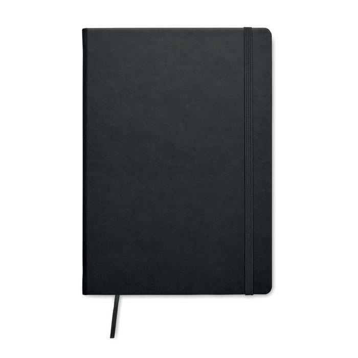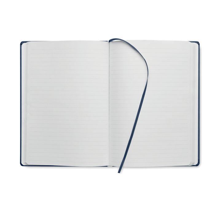 A5 notitieboekje met harde PU kaft. Kaft gebonden. 200 gelinieerde pagina's (100 vel) in gerecycled papier (80 g/m²). Bijpassende elastische sluitingsband en leeslint. Gemaakt in de EU.