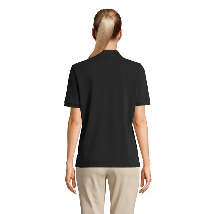 Deze damespolo is ontworpen als ideaal relatiegeschenk, perfect te personaliseren met uw logo via bedrukking. Het comfortabele materiaal en de klassieke korte mouwen maken het geschikt voor dagelijkse promotie of events, waardoor uw merk opvalt bij uw doelgroep. Door de hoogwaardige constructie, inclusief nekband voor extra stevigheid, blijft de polo langdurig representatief, wat bijdraagt aan een positieve associatie met uw onderneming. Bestel in grote aantallen en laat ons de personalisatie verzorgen voor een naadloze integratie in uw campagnes.