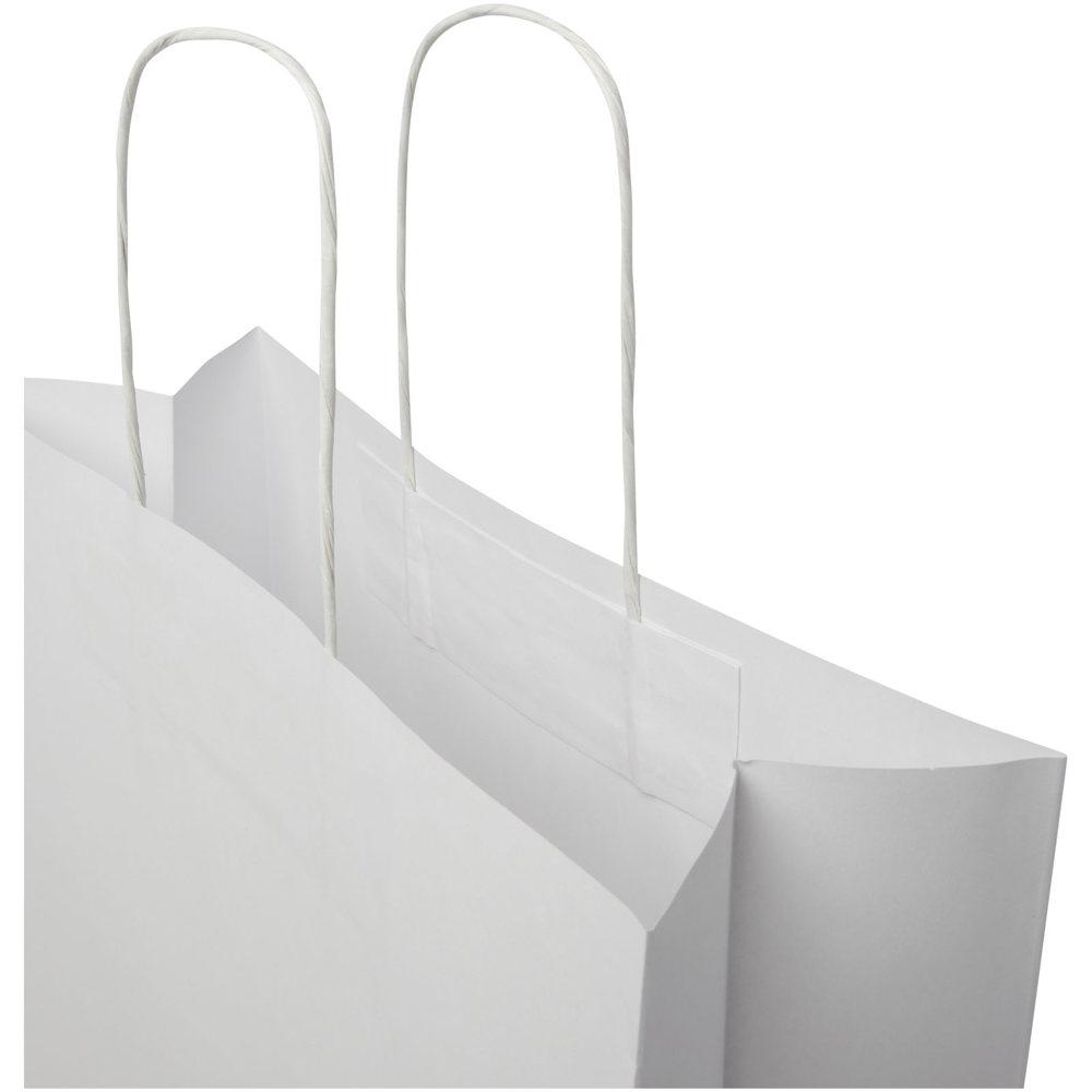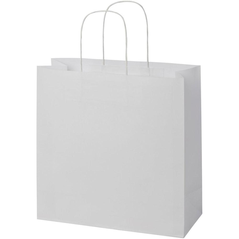 XL tas van kraftpapier (31 x 12 x 31 cm) van 120 g/m2 met gedraaide papieren handgrepen. De aanpasbare voor- en achterkant bieden voldoende ruimte voor het afdrukken van een logo of een ander ontwerp, waardoor het een uitstekende zakelijke marketingtool is. Gemaakt in Europa en 100 % recyclebaar, waardoor deze tas een duurzamere keuze is voor milieubewuste bedrijven en mensen die op zoek zijn naar een duurzame verpakkingsoplossing.