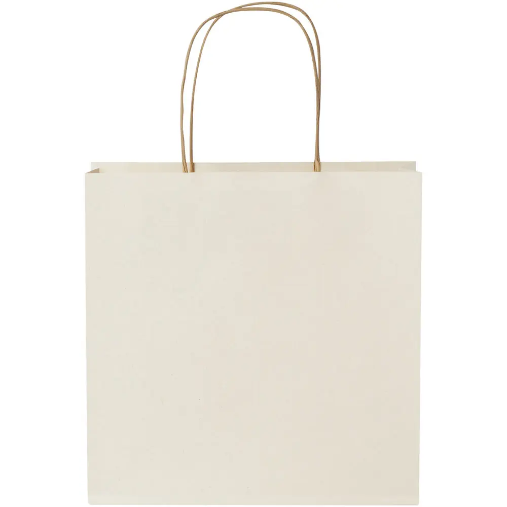 Ontdek de ideale duurzame verpakkingsoplossing voor uw marketingacties en events: onze papieren tas van 150 g/m², vervaardigd uit landbouwafval met robuuste gedraaide papieren handgrepen. Met afmetingen van 24 x 9 x 24 cm biedt deze tas een compact formaat dat perfect past bij giveaways en promotiemateriaal.