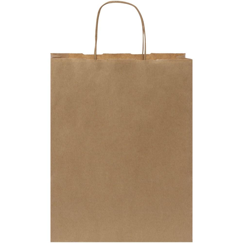 Papieren tas 80g/m2 maat M (25 x 11 x 32 cm) gemaakt van kraftpapier met gedraaide handgrepen. Gemaakt in Europa van papier van verantwoorde herkomst, is het een duurzame verpakkingsoplossing met voldoende ruimte voor verschillende artikelen. Het natuurlijke en rustieke uiterlijk van het kraftpapier geeft elke gelegenheid een elegant tintje. Deze tas is perfect voor boodschappen, cadeaus of evenementen en is een milieuvriendelijk alternatief voor plastic tassen. Omarm het praktische aspect en de verantwoordelijkheid voor het milieu met onze papieren krafttassen.