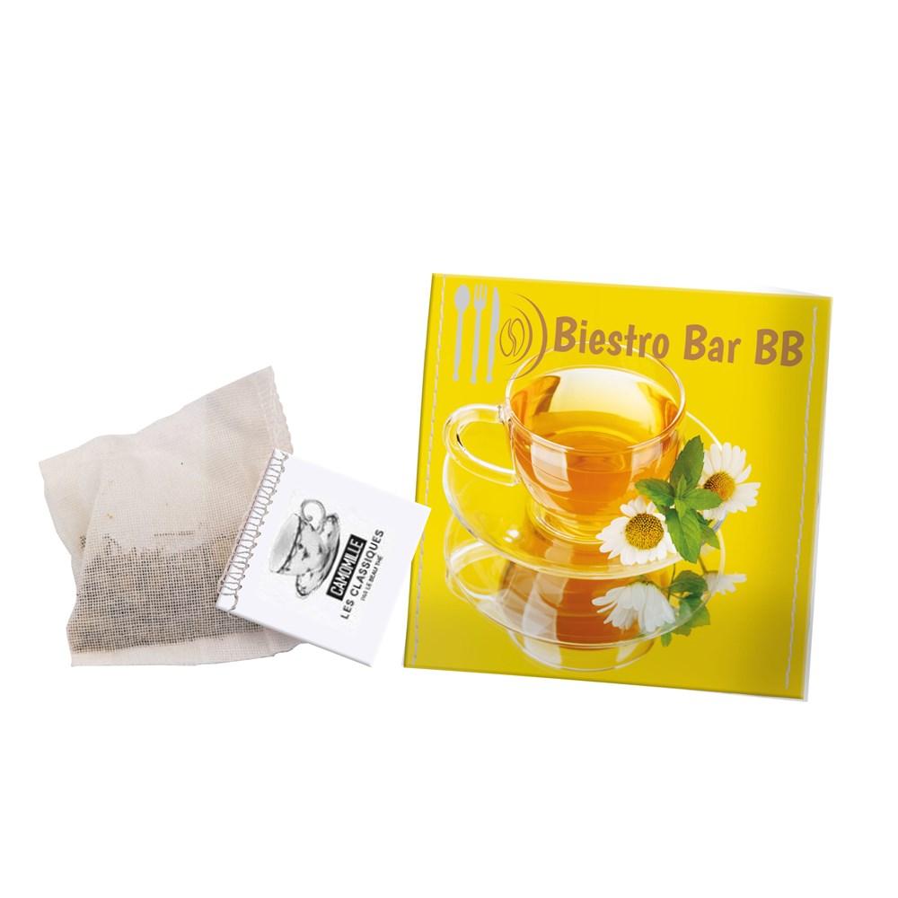 Katoenen theebuidel, met biologische Earl grey thee in een full colour bedrukt papieren zakje
