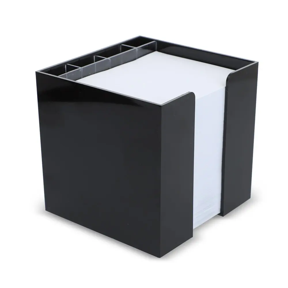 De Papierkubus de luxe is een praktisch en stijlvol relatiegeschenk voor uw marketingcampagnes of events. Deze compacte kubus (10x10x10 cm) bevat ongeveer 800 vellen papier en biedt vier transparante vakken voor kantoorbenodigdheden zoals pennen of paperclips, ideaal voor dagelijks gebruik op kantoor of thuis. Dankzij FSC-naleving kiest u voor duurzaamheid en een groen imago voor uw merk.