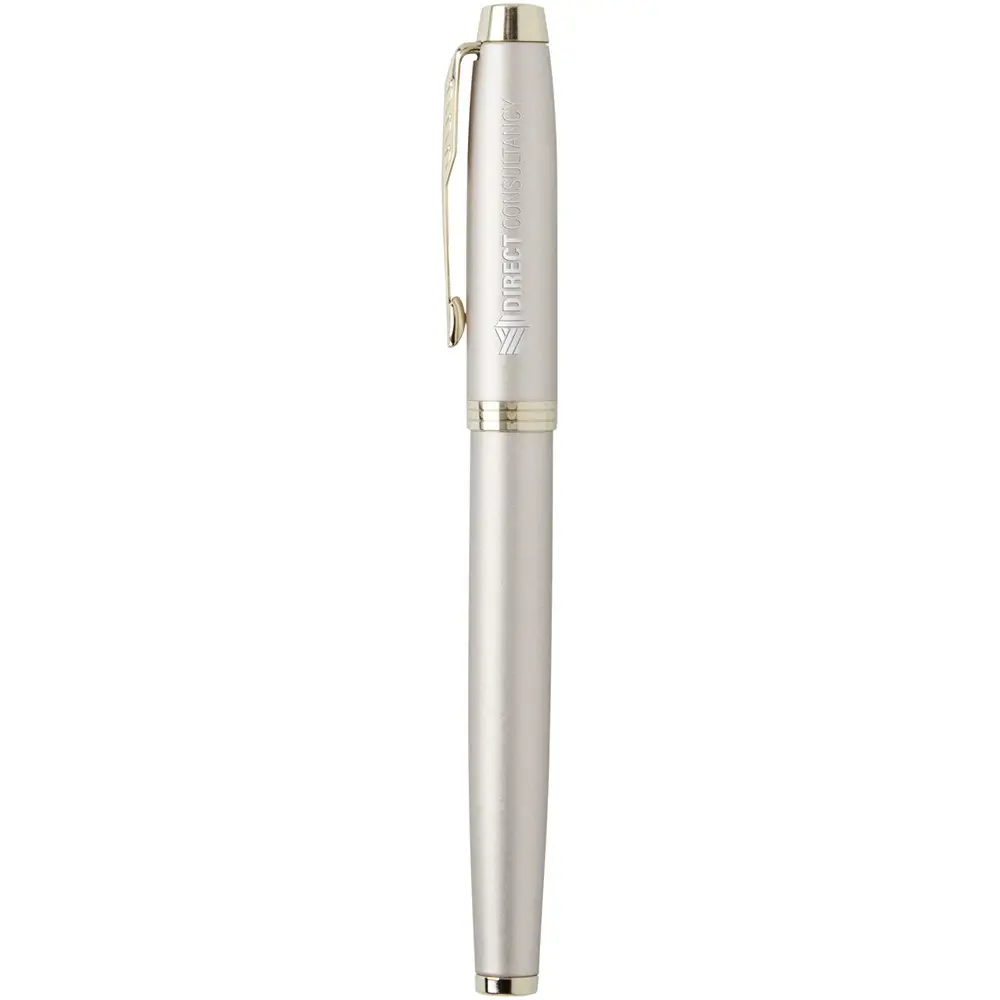 De Parker IM rollerbalpen is uw ideale partner voor professionele relatiegeschenken met logobedrukking. Dit slimme en gepolijste schrijfinstrument biedt onbeperkte mogelijkheden voor branding, met een duurzame roestvrijstalen punt en verfijnde afwerkingen geïnspireerd op klassieke Parker-modellen. Elke pen garandeert een betrouwbare schrijfervaring, perfect voor het uitdelen aan uw klanten tijdens events of als duurzame reclame.