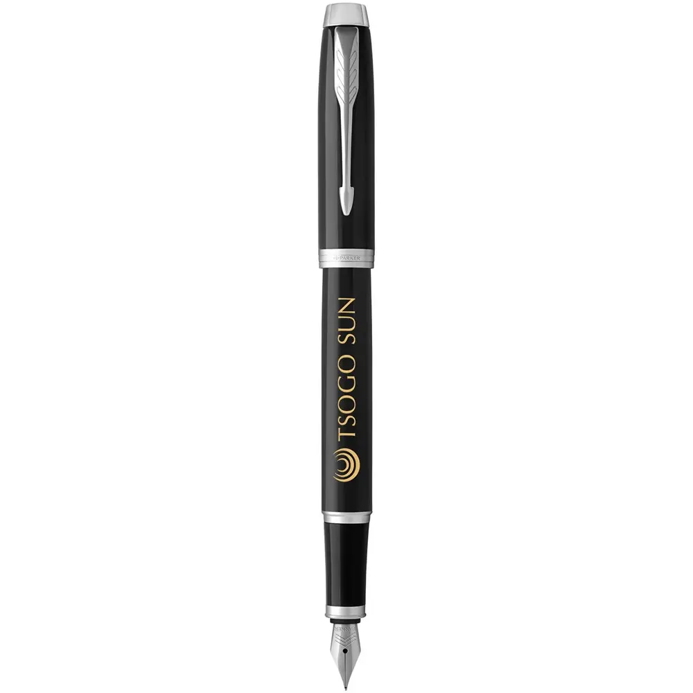 De Parker IM vulpen straalt professionaliteit en betrouwbaarheid uit, perfect als gepersonaliseerd relatiegeschenk. Met onbeperkte mogelijkheden voor logobedrukking, biedt deze vulpen een slimme en gepolijste uitstraling die herinnert aan de klassieke Parker-traditie. Elke verfijnde details zorgt voor een consistente en betrouwbare schrijfervaring, ideaal om uw merk te versterken tijdens events of als blijvende reclame.