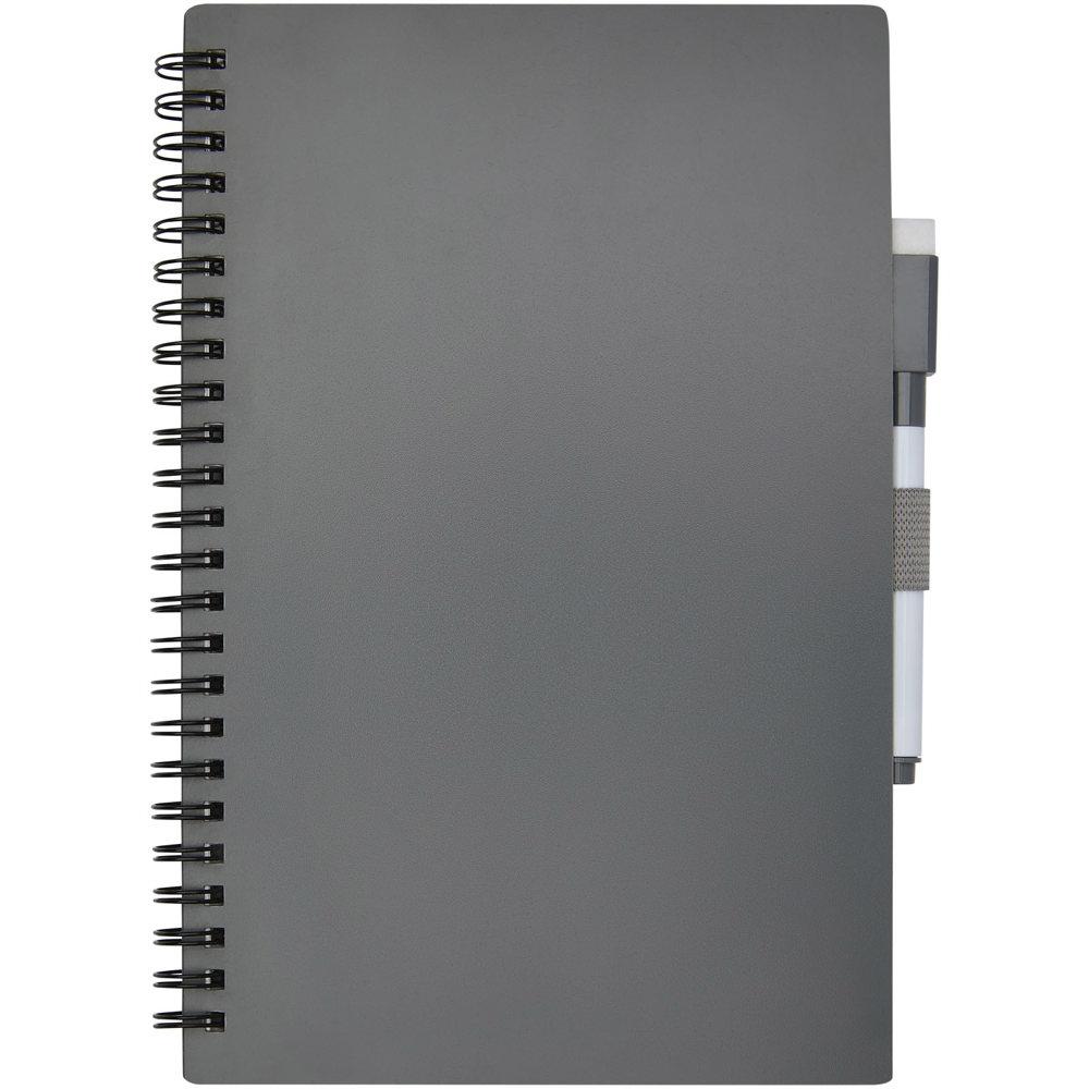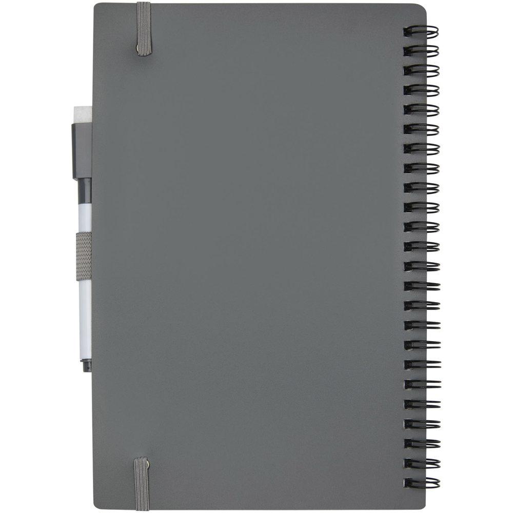 Duurzaam notitieboek gericht op het verminderen van papiergebruik om het milieu te sparen. Na een tijdje noteren, tekenen of brainstormen kunnen de pagina's worden schoongemaakt met de gum op de stift om de pagina's opnieuw te gebruiken. Het kan ook worden gereinigd met een gewone stoffen doek (niet meegeleverd). Bevat 20 vellen (40 pagina's) met een half gestippelde en half blanco opmaak en een zwarte stift.
