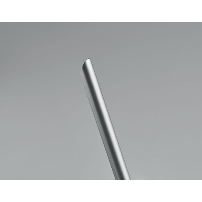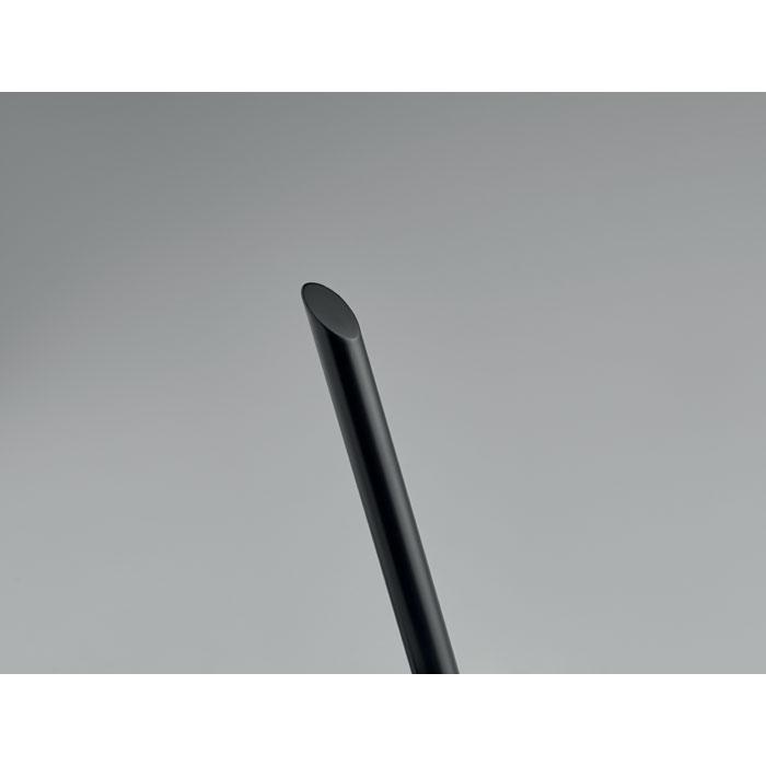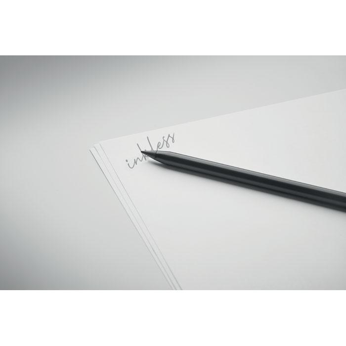 Duurzame inktloze pen van gerecycled aluminium. De pen schrijft met de grafietpunt die een plastic beschermkap heeft.