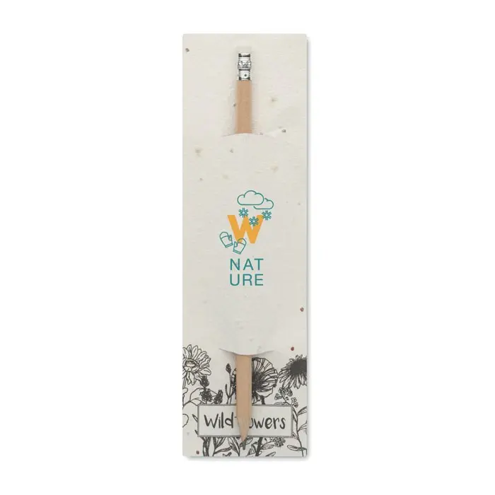Ontdek de PENSEED, uw ideale keuze voor duurzame relatiegeschenken. Dit natuurlijk houten potlood met gum komt verpakt in een zakje van zaadpapier met wilde bloemen, dat u eenvoudig kunt planten voor een bloeiend resultaat. Perfect voor marketingprofessionals en event organizers die op zoek zijn naar eco-vriendelijke promotieartikelen.