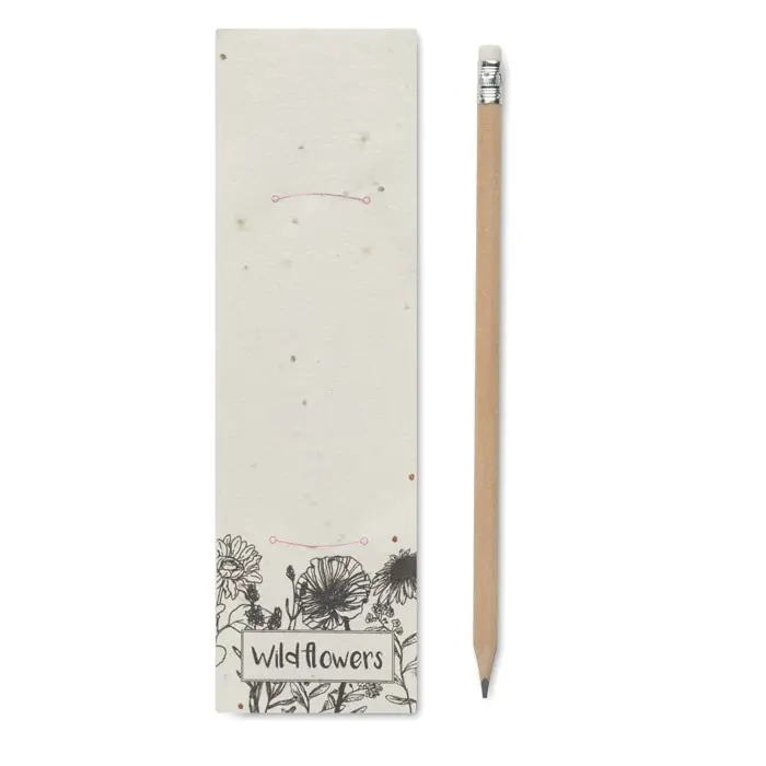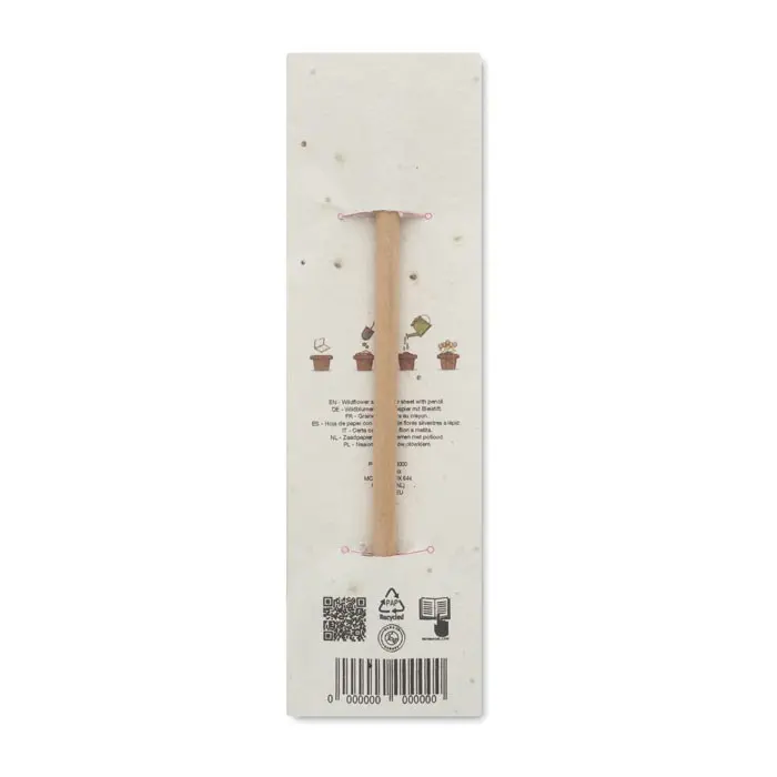 Het potlood bestaat uit hout en is bio-gecertificeerd, wat bijdraagt aan een groen imago voor uw bedrijf. Het zaadpapier in de verpakking kan na gebruik geplant worden, waardoor het uitgroeit tot kleurrijke wilde bloemen. Zo stimuleert u niet alleen creativiteit, maar ook een positieve impact op het milieu.