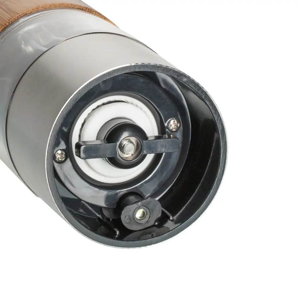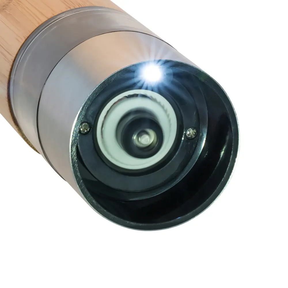 Ontdek de Peper- of Zoutmolen RE98-HOBART, een elektrische kruidenmolen vervaardigd uit duurzame bamboe en robuust roestvrij staal. Het verstelbare keramische maalwerk laat u de grofheid van de maling perfect afstellen, ideaal voor zowel fijn als grof gebruik met zout of peperkorrels. Een geïntegreerd LED-licht zorgt voor nauwkeurige dosering, zelfs in donkere omstandigheden.