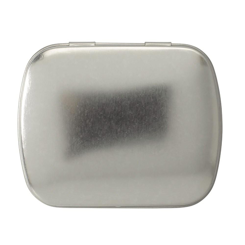 Scharnieren pepermuntblikje. Gevuld met 23 gram Europese pepermunt. Altijd verfrissende pepermuntjes bij de hand. Niet suikervrij.